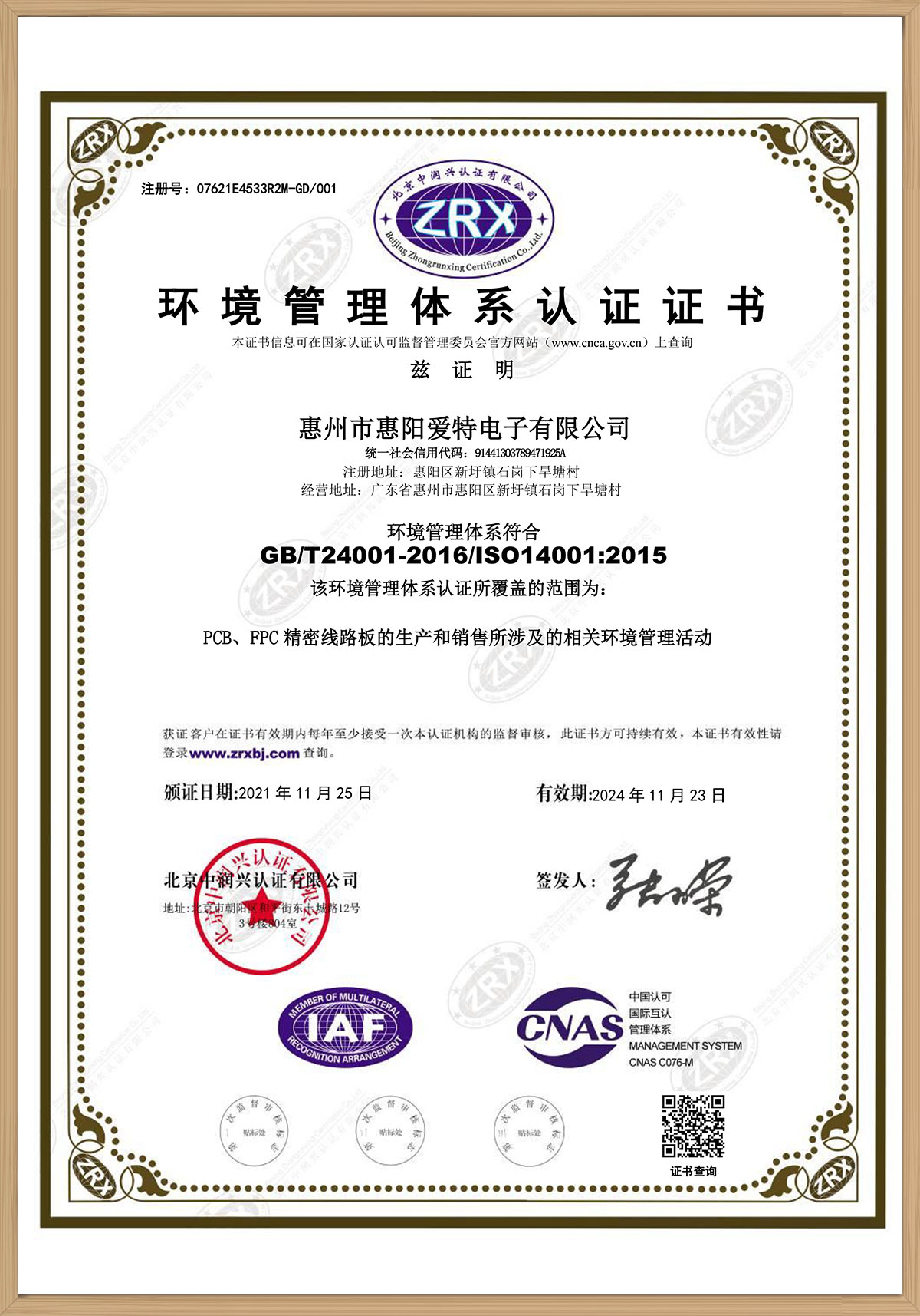 ISO14001證書