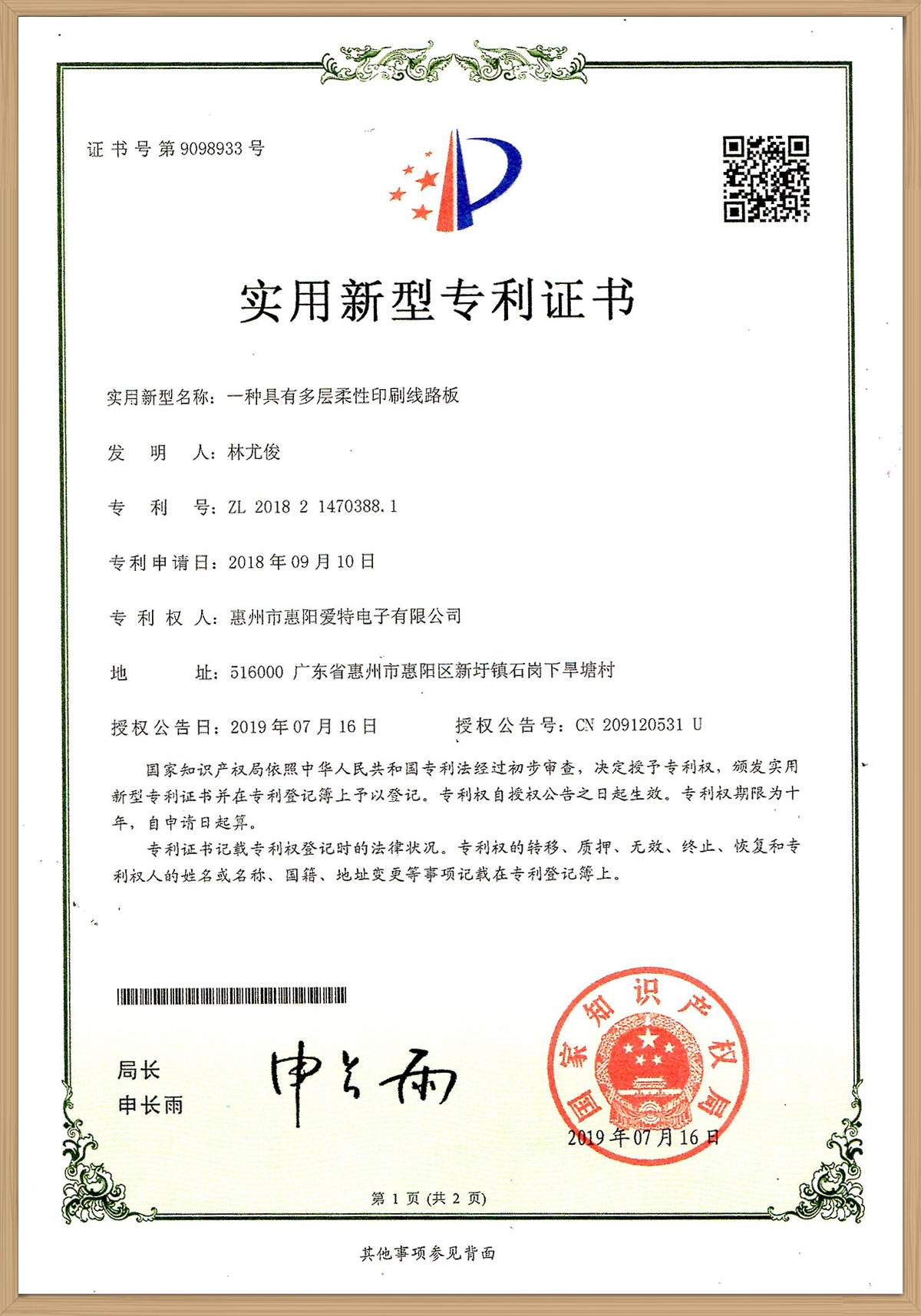 一種具有多層柔性印刷線路板